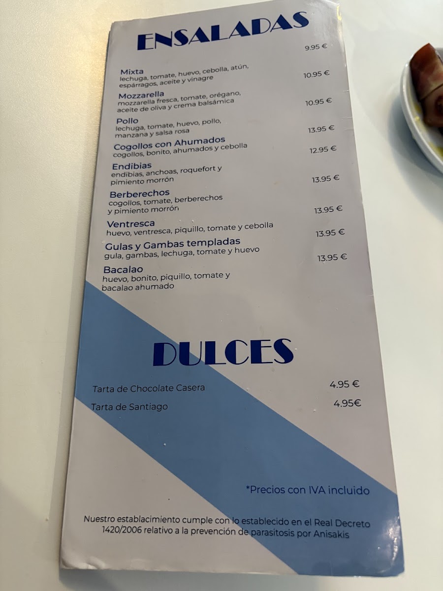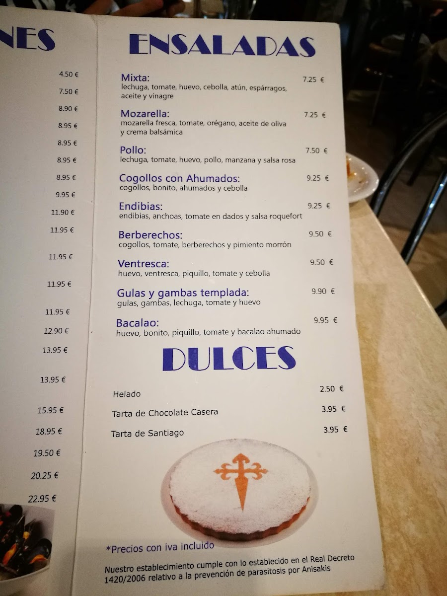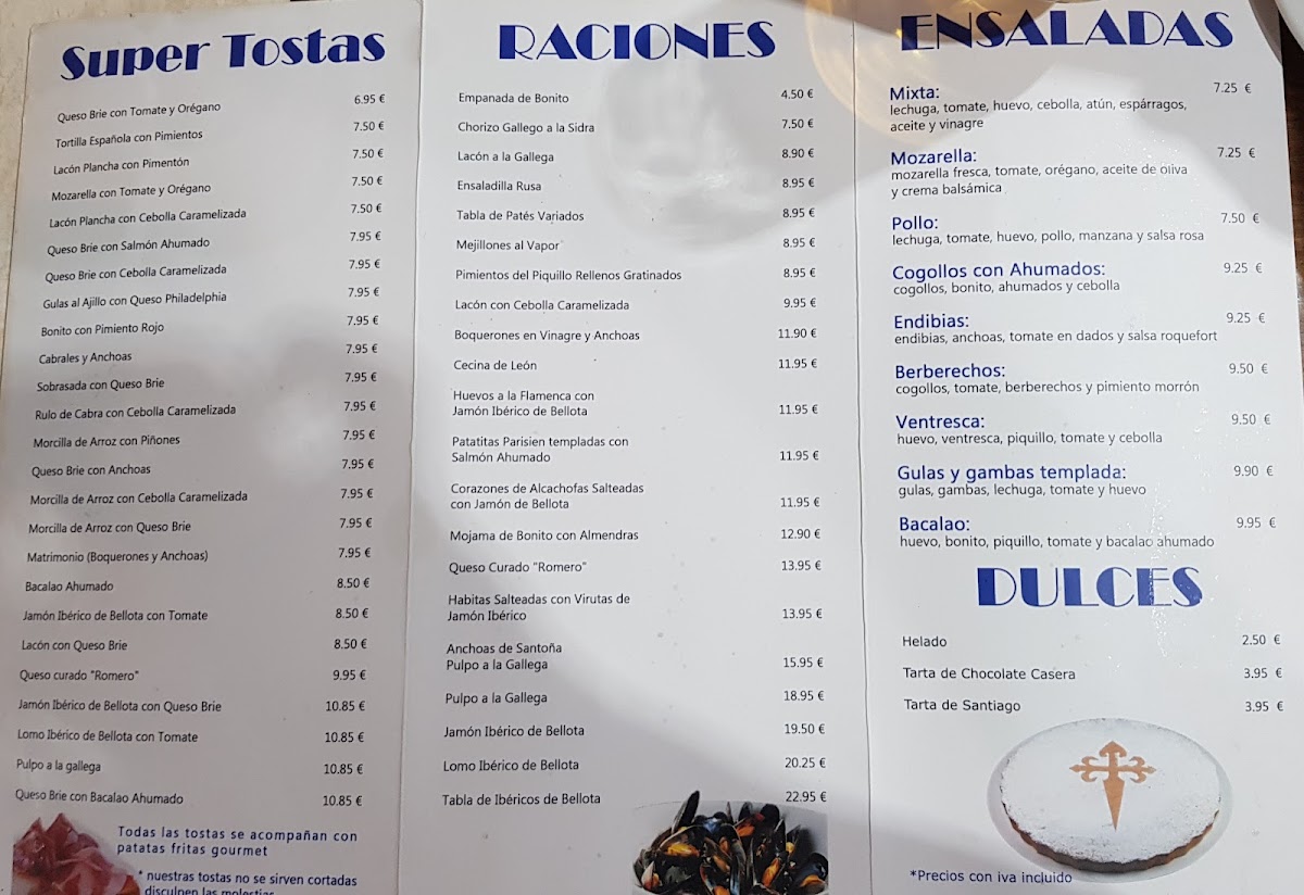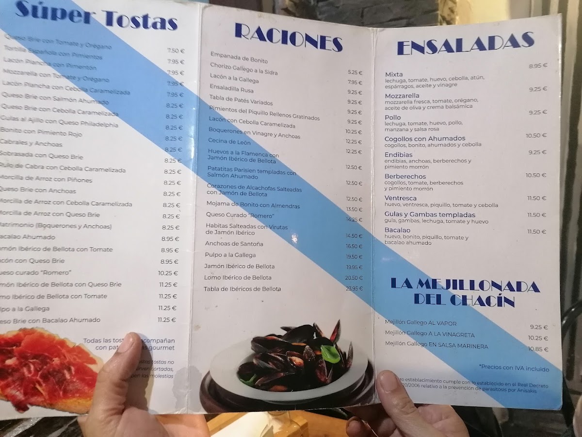 Bar Chacin is a charming tapas bar nestled in the heart of Chamartín, Madrid, offering an authentic taste of northern Spanish cuisine. The menu shines with a variety of ensaladas such as the fresh Mixta with tuna and asparagus, or the decadent Endibias with anchovies and Roquefort sauce. Their raciones impress with hearty, traditional dishes like Lacón a la Gallega, Chorizo Gallego a la Sidra, and the exquisite Huevos a la Flamenca con Jamón Ibérico de Bellota. For a sweet finish, homemade desserts like Tarta de Santiago and rich chocolate cake provide the perfect balance.